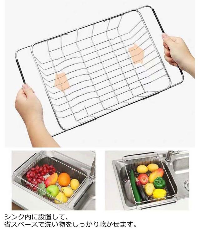 水切りバスケット ステンレス製スライド式 ステンレス キッチン キッチンラック 水切りラック 水きり 水切りカゴ ラック カゴ 食器入れ 食器 シンク 新生活 キッチン用品 キッチン用品 雑貨 シンク渡し シンク横 一人暮らし 狭い キッチン おすすめ