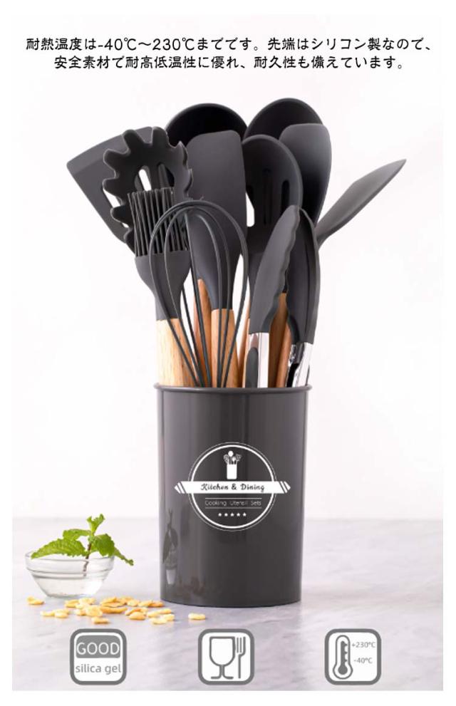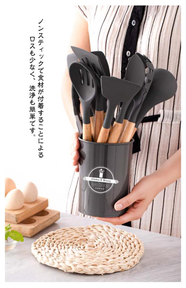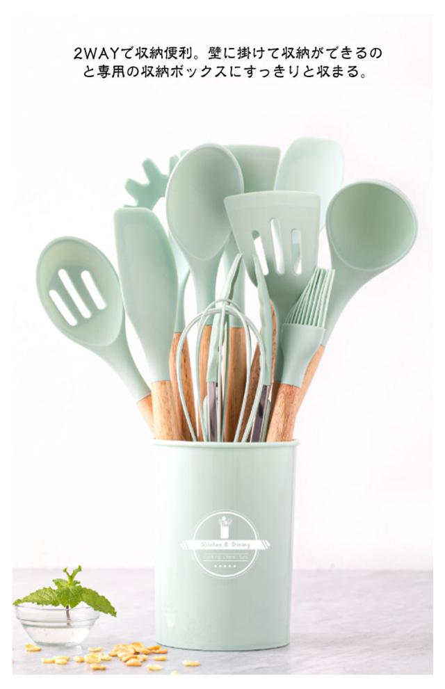 キッチンツール セット 収納 北欧風 シリコン製 調理器具ツール キッチンツールセット 収納ボックス付 キッチン用品 安全素材 台所用品 耐熱シリコ 調理 料理 製菓器具 クッキング用品 フライ返し 便利