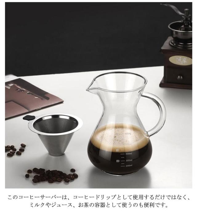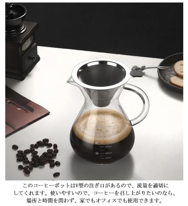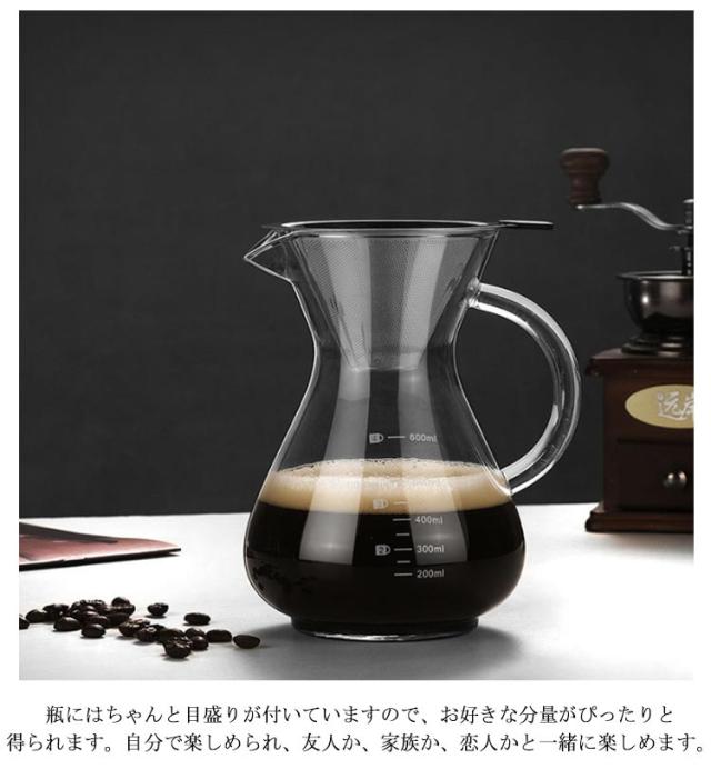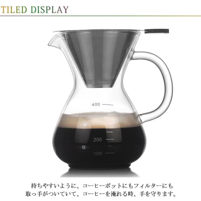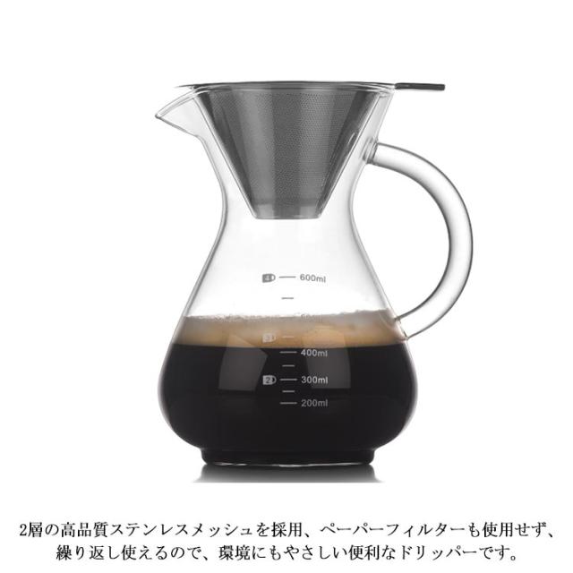 コーヒーカラフェセット 600ml 400ml ステンレス フィルター 耐熱ガラス ドリッパー コーヒーサーバー コーヒードリッパー プレゼント コーヒードリップ器具 ピッチャー ハンドドリップ 2/4杯分 2/4人分 おしゃれ コーヒー メーカー ポット 珈琲