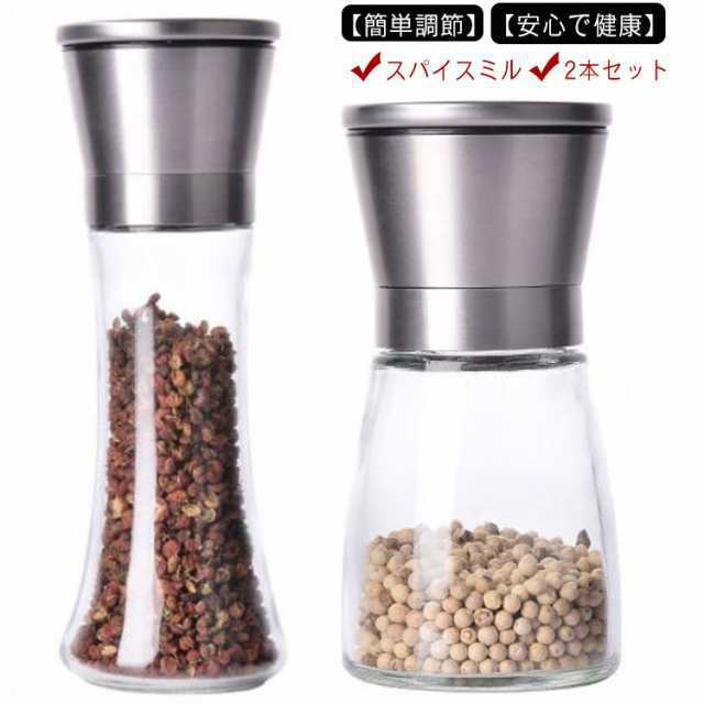 塩 ペッパーミル 胡椒ひき 2本セット 黒胡椒 胡椒 コショウ スパイスミル デザイン 器具 岩塩 花椒 ミル 手動 花山椒 結晶塩 山椒 キッチン 小物 ガラス製 おしゃれ シンプル ソルトミル