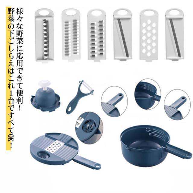 14点セット スライサーセット 1台多機能 おろし 野菜切り器 千切り スライサー 野菜調理器セット 水切りラック 野菜カッター 水切りボウル みじん切り マルチ スライス 細千切り スライサー 細切り 水切り おろし 薄切り 果物 調理器セット キャベツスライサー 食器として