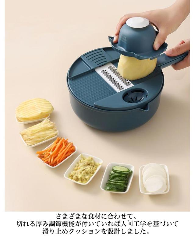 | 様々な野菜に応用できて便利!野菜の下ごしらえはこれ1台ですべてOK! さまざまな食材に合わせて、切れる厚み調節機能が付いていれば人?工学を基づいて滑り止めクッションを設計しました。 ニンジン以外にも、玉ねぎ、じゃがいも、大根、ポテトなど、様々な野菜に応用できて便利! アップグレード、本体強化、双層デザイン、より丈夫で、耐える力が強い、耐用性、全面的の野菜調理器 安全ホルダー付き。指が直接食材に触れずに野菜を切ることができます。特に子供が使う時怪我を防止することができます。 磨滅に耐え、気軽に切り替え、使うと気楽になりました。 食品レベルの原材料、五つの鋭い高品質のステンレス製ブレードからなっておりますので、清潔感があり、切れ味が良く、どんなキッチンにも合います。 取り替えの五つブレード、ステンレス製、切れ味抜群、鋭いで、洗う時に気をつけてください。 | |