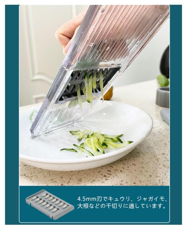 野菜カッター 千切り きゅうり スライサー 平切り 細切り せん切り器 調理道具セット 千切り 薄切り 片切り せん切り器 せん切り 厚さ調節 手動 使用簡単 キャベツ 玉ねぎ 調理器セット 人参 大根 じゃがいも