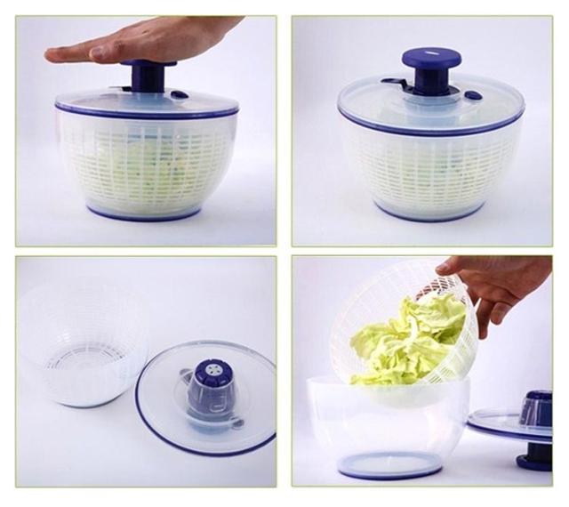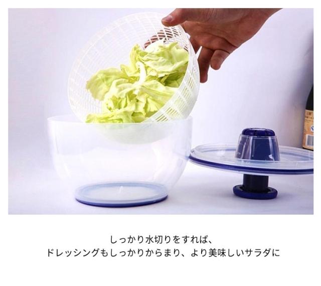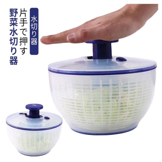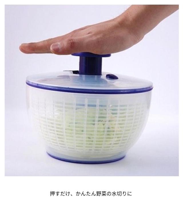 | 片手で押す 野菜水切り器 押すだけ、かんたん野菜の水切りに 片手で簡単に野菜の水切りができるサラダスピナー。 しっかり水切りをすれば、ドレッシングもしっかりからまり、より美味しいサラダに | |