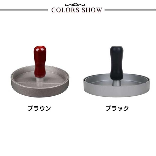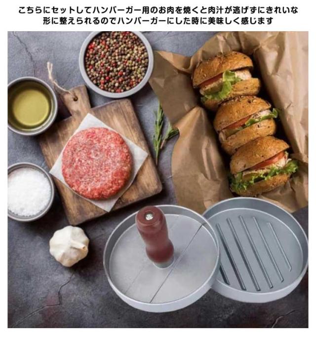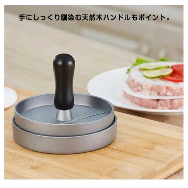 | 自家製ハンバーガーが作れるミートプレス器です。 こちらにセットしてハンバーガー用のお肉を焼くと肉汁が逃げずにきれいな形に整えられるのでハンバーガーにした時に美味しく感じます 手にしっくり馴染む天然木ハンドルもポイント。 | |