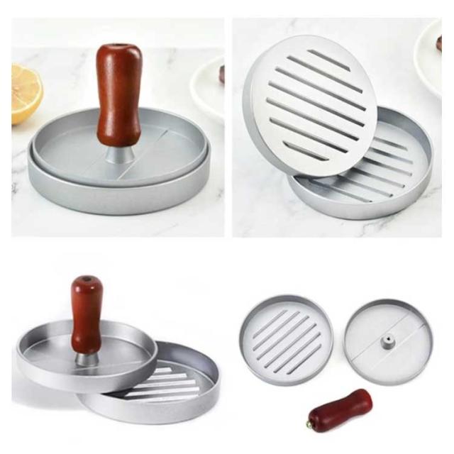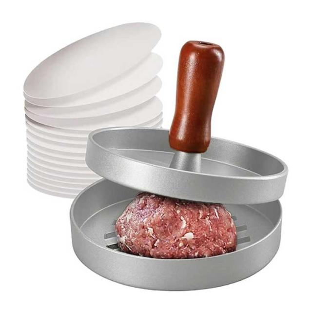 ワックスペーパー ハンバーガープレス 3個セット DIY ハンバーガーメーカー 肉プレス アルミ合金 木製ハンドル付き 肉押さえ 3個セット ミートプレス キッチン用品 アウトドア キャンプ バーベキュー
