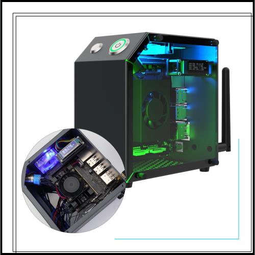 【コンパクトなミニデザイン、照明装飾】Yahboomの金属製ケースはJetson開発ボード専用に設計されたもので、インターフェースが完全に一致し、冷却ファンやRGBライトストリップの取り付けをサポート。ミニコンピュータケースのような外観を実現しています。