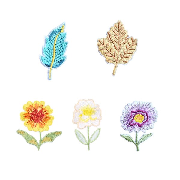 アイロン ワッペン 動物 アルファベット ベルクロ アップリケ おしゃれ 刺繍 入園 (木の葉と花 5点 セット)