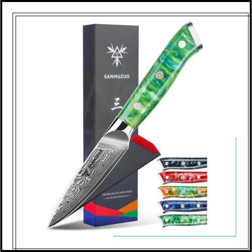 SANMUZUO 3.5 インチ パーリングナイフ - キッチン フルーツ 野菜ナイフ ダマスカス鋼 & 樹脂ハンドル - Xuan シリーズ (ジェイドグリー