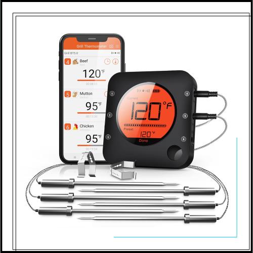 ◆商品名:Bluetooth 肉用温度計 ワイヤレス 肉用温度計 ワイヤレスデジタルグリル温度計 6つの温度プローブ付き 大型LCDディスプレイ Bluetooth温