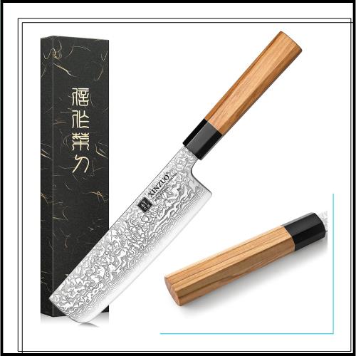 XINZUO 17.8cm ダマスカス鋼Nakiriナイフ菜切り包丁-67層ダマスカス鋼キッチン包丁-プロの鋭いアジア包丁、肉、魚、野菜、果物を切るため
