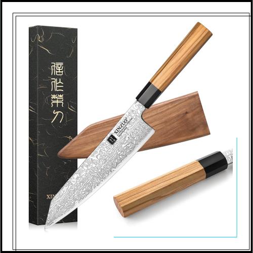 XINZUO 21.5cmダマスカス鋼シェフナイフ - プロフェッショナル包丁ダマスカス牛刀文化包丁、肉、野菜、果物 - オリーブウッド+バッファロ