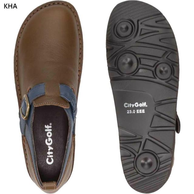 3E 幅広 ワイド ゴルフ レディース シティ ゴルフ City Golf アウトステッチ製法のカジュアルシューズ 靴 シューズ カジュアル オブリークラスト ブラック 黒 ブラウン カーキ 茶色 送料無料 GOLF GFL20137
