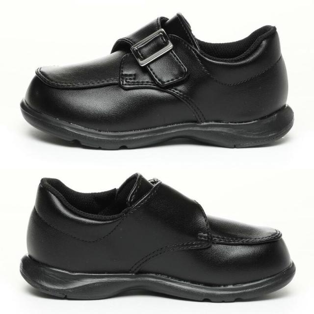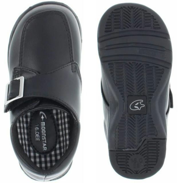 足の成長を考えた機能性子ども靴「ムーンスターキャロット」のフォーマルシューズです。脱ぎ履きしやすい甲バンドタイプです。モンクストラップタイプのベーシックなデザインで普段履きにも使えます。子どもの足の成長をサポートする4つの機能(つま先ゆったり/カウンターボックス/フレックスジョイント/洗えるインソール)を搭載しており、ハーフサイズ対応でお子さまの成長に合わせたサイズ選びが可能です。