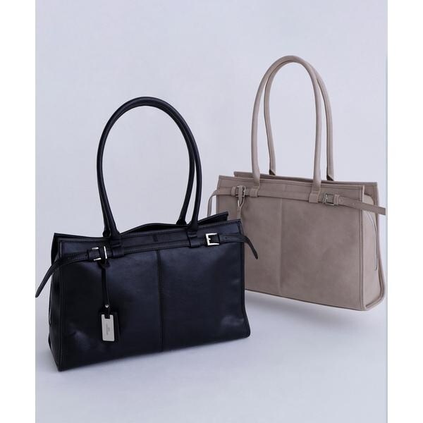 ヴィンテージ感漂うフェイクレザーを使用した、A4ファイルやノートパソコンが収納可能なトートバッグ。口元はラウンドファスナーでがばっと開くので、中に収納しているモノが把握しやすくなっています。ライナーにはノートパソコンが入る、パッド付きポケットが内蔵されているため、持ち運びにも便利でお仕事シーンにも安心。また、サイドファスナーを閉じた状態でもスマートフォンや鍵、ちょっとしたモノをさっと取り出せるポケットが付いているなど、細部まで拘ったデザインです。