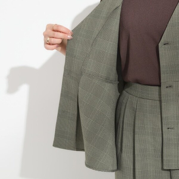 同素材のワイドパンツと合わせてセットアップとして着用すれば、トレンド感のあるスタイルに。