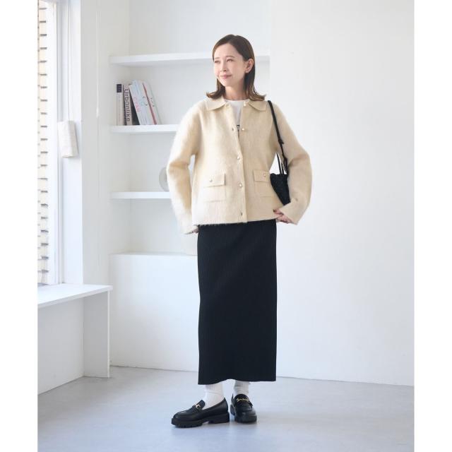 ・パンツにもスカートにもバランス良く合わせられる着丈でインナーにタートルネックを合わせたり、ワンピースに羽織ったりするのもおすすめ。