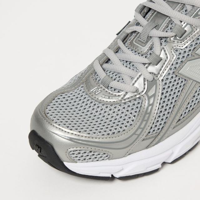 シンセティックレザーとダブルメッシュを採用した、異素材アッパーが印象的です。