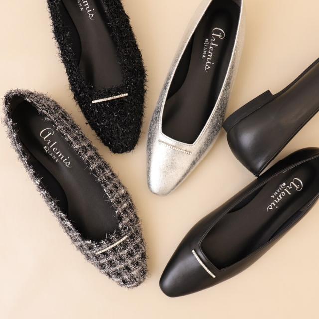 アルテミス by ダイアナ(artemis by DIANA)/【片足130g】軽量 ラインストーンバー スクエアカットフラットシューズ