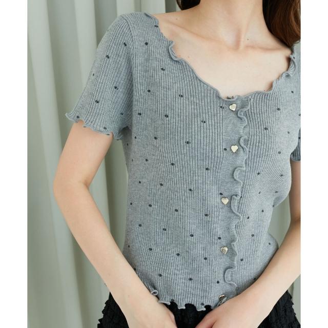 今シーズン大注目のドット柄がプリントされたハーフスリーブのニットカーディガン。