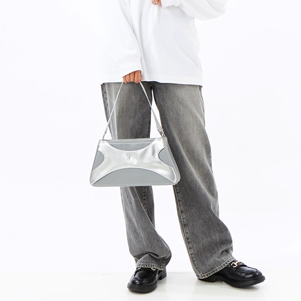 このアディダスのクラッチバッグは、ファッショナブルなシルエットと素材に、機能的な要素を融合している。光沢のあるメタリックのリップストップと、パール調のポリウレタンを使用。取り外しが可能なストラップが付属しているので、ショルダーバッグかクラッチとして使える。内側にスリップインポケットがあり、小物を整理できる。