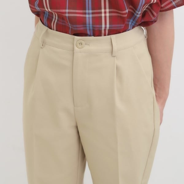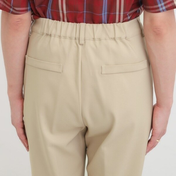 脚を真っ直ぐに見せてくれるシルエットで、体のラインを拾いにくく、すっきりとしたきれいなスティックパンツ。