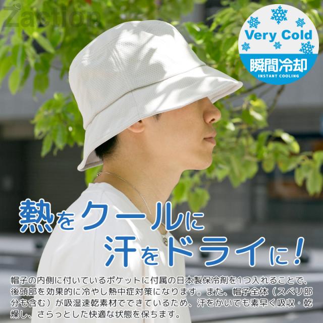 熱中症対策 帽子 [メール便可] 涼しい 吸水速乾 メンズ レディース 大きいサイズ 深め 春夏 アウトドア / ひんやりPocketバケットハット