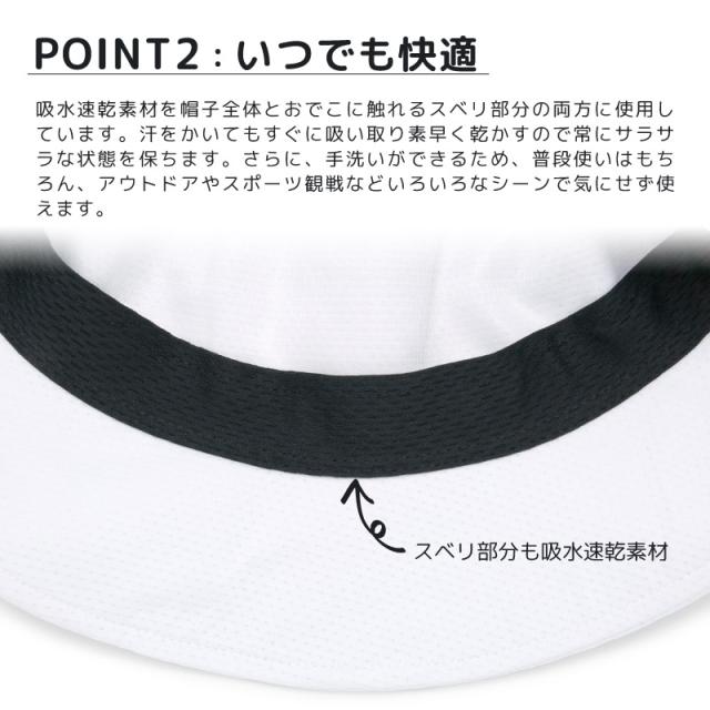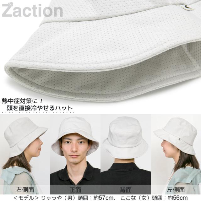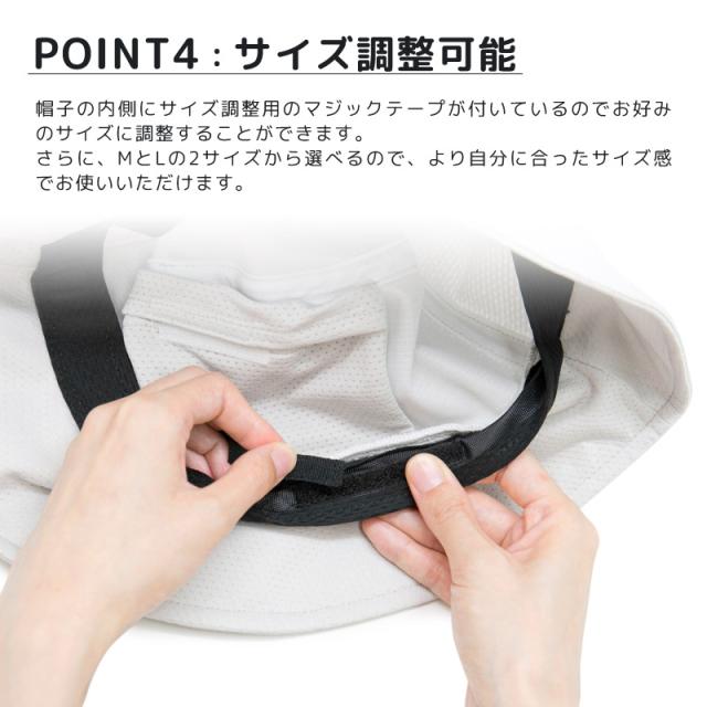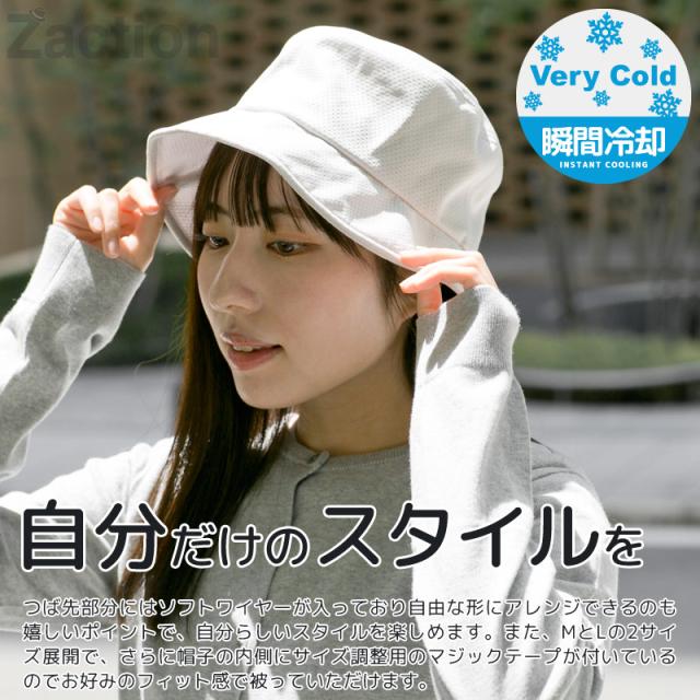 真夏のお出かけも快適に楽しめる、Zactionオリジナルで機能性抜群のバケットハットです。内側に付いているポケットに付属の日本製保冷剤を1つ入れることで、後頭部を効果的に冷やし熱中症対策になります。また、帽子全体(スベリ部分も含む)が吸湿速乾素材でできているため、汗をかいても素早く吸収・乾燥し、さらっとした快適な状態を保ちます。つば先部分にはソフトワイヤーが入っており自由な形にアレンジできるのも嬉しいポイントで、自分らしいスタイルを楽しめます。MとLの2サイズ展開で、さらに帽子の内側にサイズ調整用のマジックテープが付いているのでお好みのフィット感で被っていただけます。