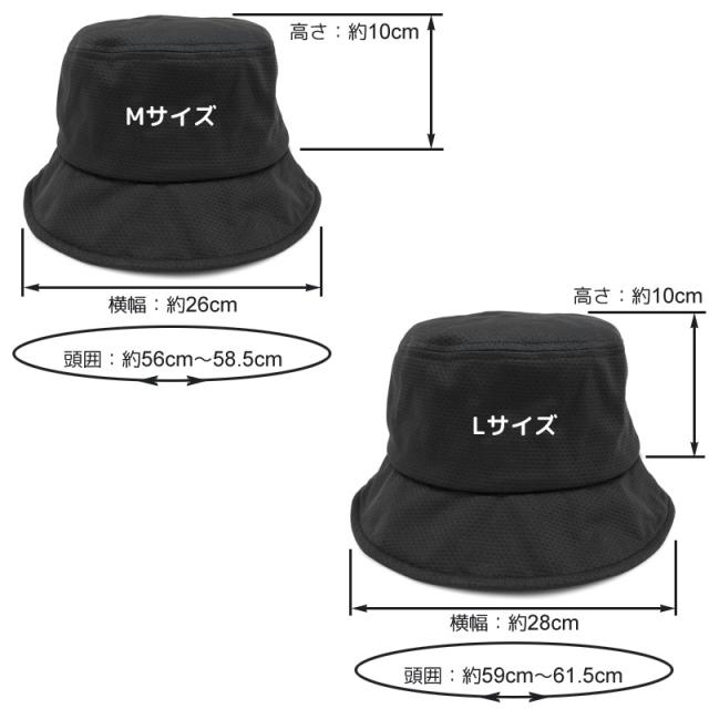 | サイズ | Mサイズ:サイズ表記56〜58.5cm(頭囲:約56〜58.5cm、高さ:約10cm、横幅:約26cm[つばも含む]、つばの長さ:約5.5cm) Lサイズ:サイズ表記59〜61.5cm(頭囲:約59〜61.5cm、高さ:約10cm、横幅:約28cm[つばも含む]、つばの長さ:約6cm) |