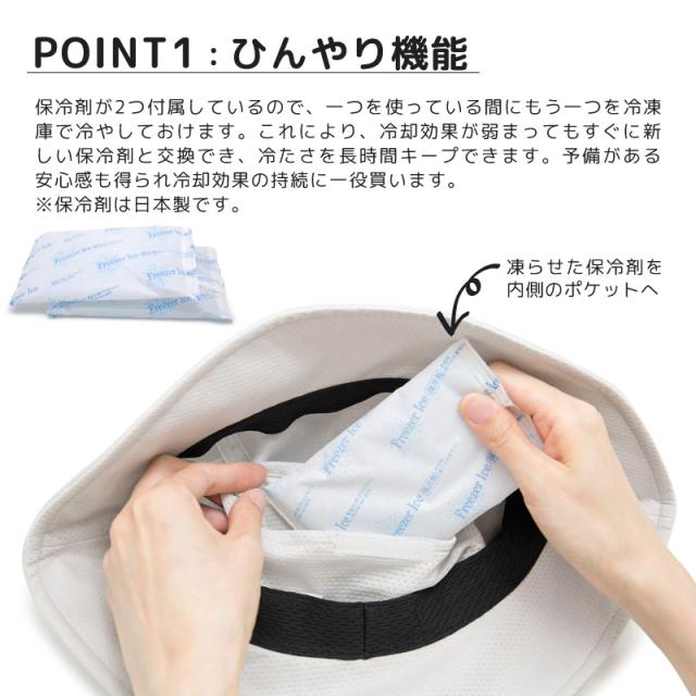 帽子全体が吸湿速乾生地だし暑い夏にピッタリですね。保冷剤を入れて被ると頭がひんやりとして、とても快適に過ごせます。