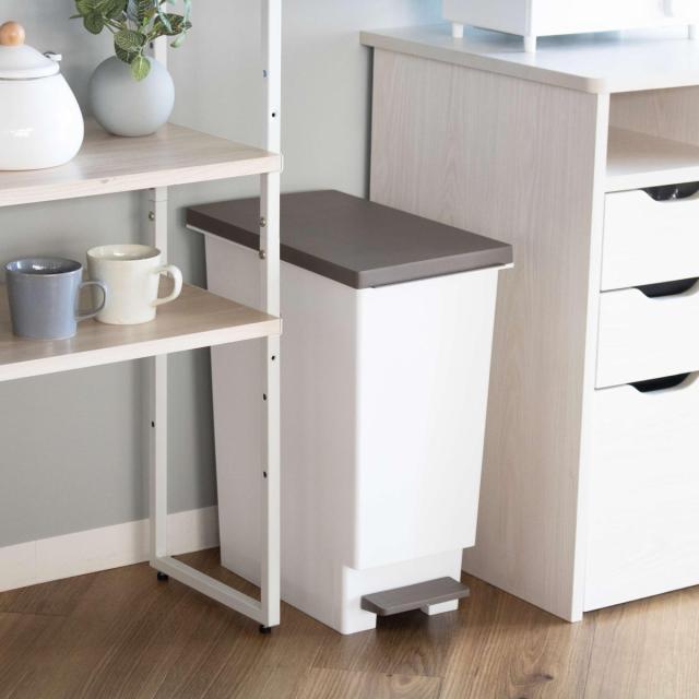 ゴミ箱 30L スリムペダル ふた付きブラウン ( ごみ箱 30リットル スリム ペダル式 ふた付き 角型 キッチン 分別 すき間 幅23.5cm シンプル 袋止め付き ゴミ袋が見えにくい ホワイト ブラウン )