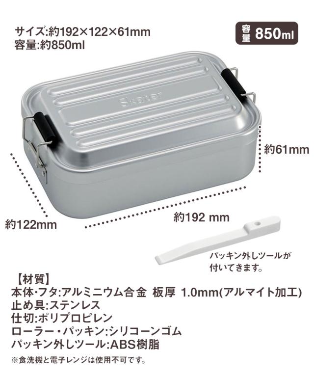 軽くて丈夫なアルミ製のタイトランチボックス(1段)です。