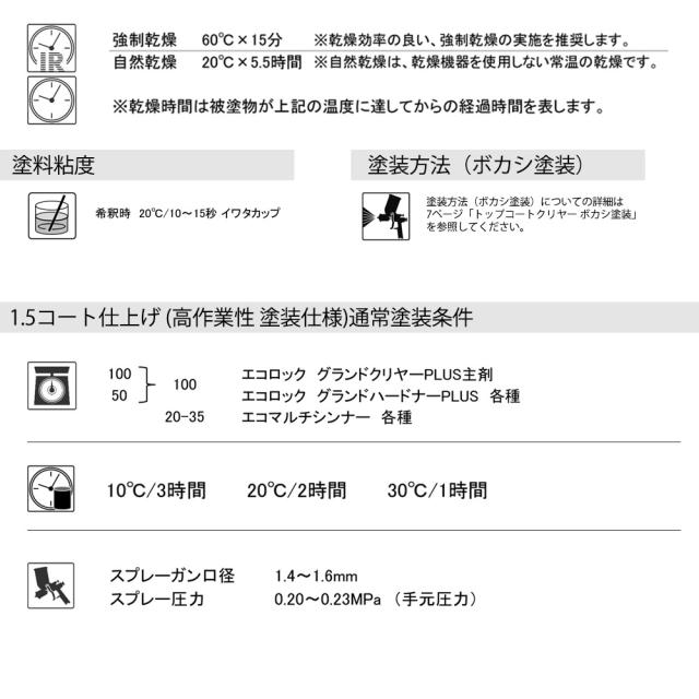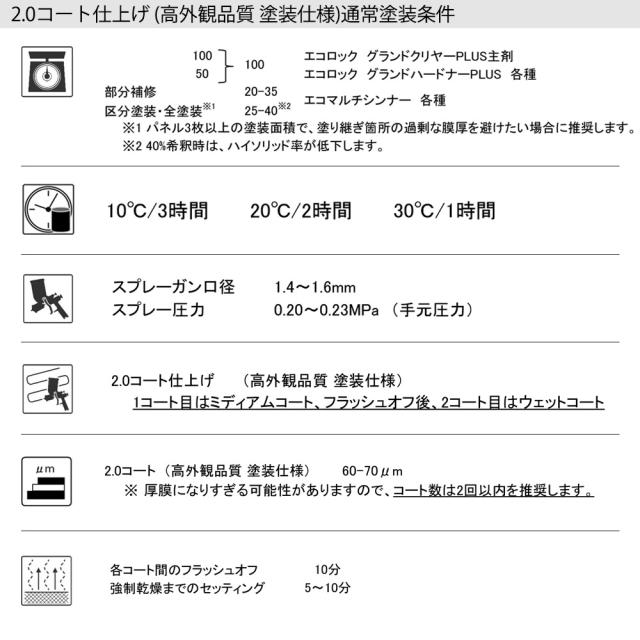 エコロック グランドクリヤーPLUSは、超高光沢・高鮮映性で肉持ち感のある高外観仕上りを実現可能にする環境配慮型 2:1 アクリルウレタンハイソリッド トップコートクリヤーです。