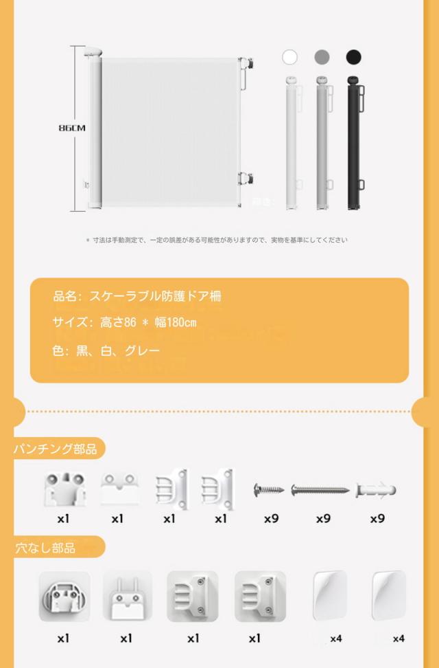 〇サイズ:ロール幅:最大180cm、高さ:86cm、収納時:約10cm
