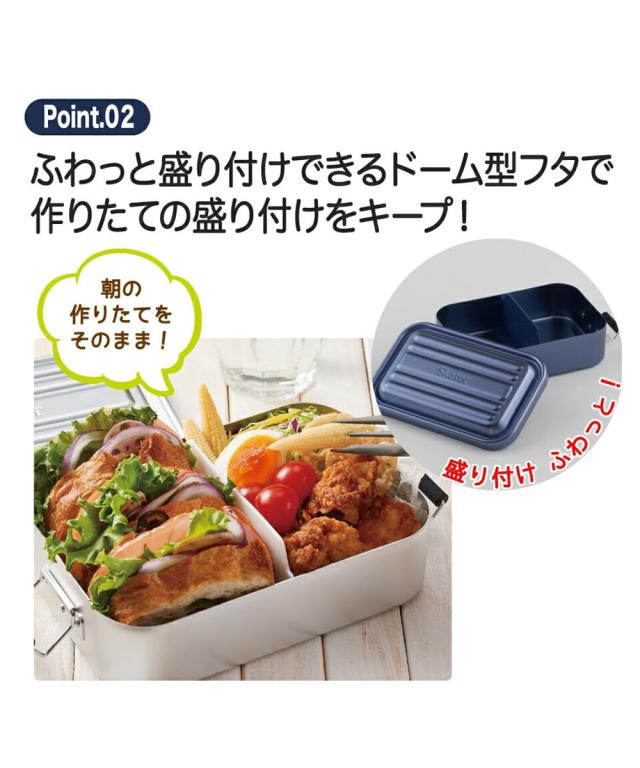 アルミ ランチボックス 弁当箱 600ml 1段 ドーム型 パッキン付き 仕切り付き 高校生 大学生 部活 スポーツ シンプル シルバー AFT6B