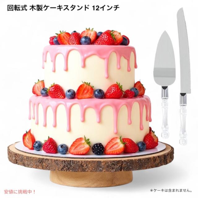 回転式 木製ケーキスタンド 12インチ ナイフ&サーバーセット付き 回転台 Rotating 12Inch Wood Cake Stand ケーキデコレーション