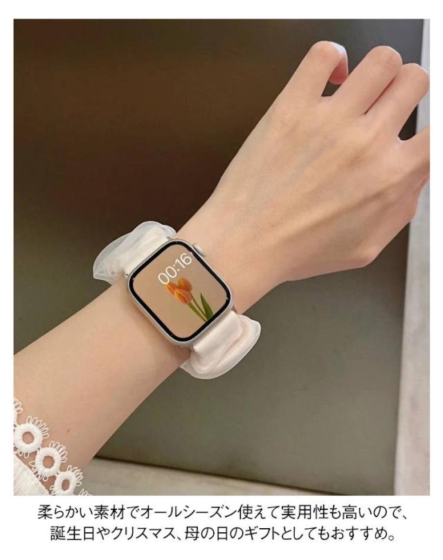 アップルウォッチ バンド シュシュ Apple Watch 時計 腕時計 バンド レディース スマート シュシュ シアー フリル 睡眠 用 Android かわいい 10色 韓国風 防水 おしゃれ キラキラ 大人可愛い 38mm 40mm 41mm 42mm 49mm