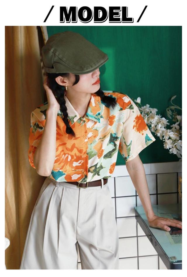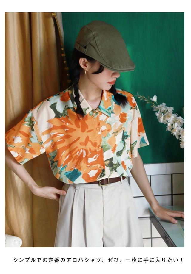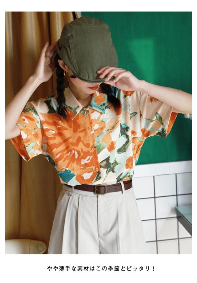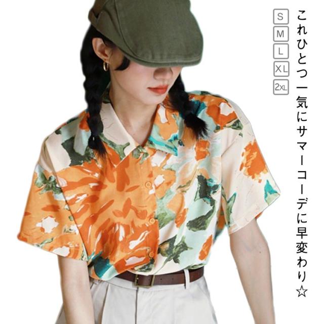 アロハシャツ レディース 夏 シャツ 半袖 花柄シャツ トップス ブラウス ボタニカル柄 大きいサイズ バイカラーシャツ 花柄 トップス ダンス 衣装 ヒップホップ コスチューム 開襟 可愛い 開襟シャツ カジュアル 旅行 サマーウエア リゾート 大きいサイズ ゆったり おしゃれ