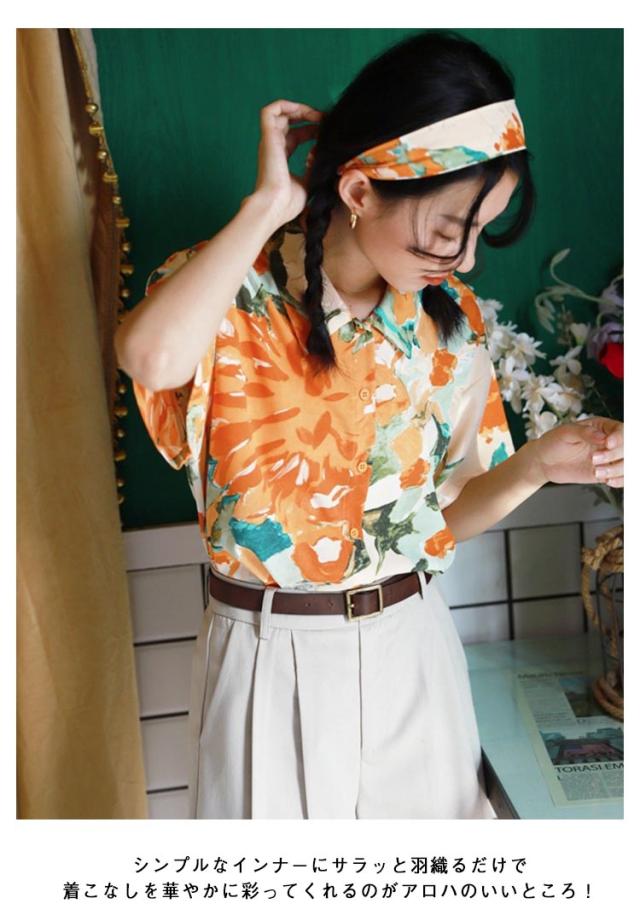 | これひとつ一気にサマーコーデに早変わり☆ 夏に着回せるカジュアル定番アロハシャツ。 シンプルでの定番のアロハシャツ、ぜひ、一枚に手に入りたい! やや薄手な素材はこの季節とピッタリ! シンプルなインナーにサラッと羽織るだけで着こなしを華やかに彩ってくれるのがアロハのいいところ! 派手ながら、普段使いはもちろん、ちょっとしたお出かけなど、アクティブにも映えること間違いなし。スリーブ部分は、ゆったりとしたラフなシルエットを演出。 | |