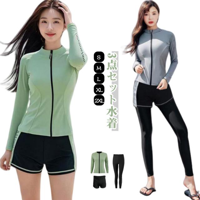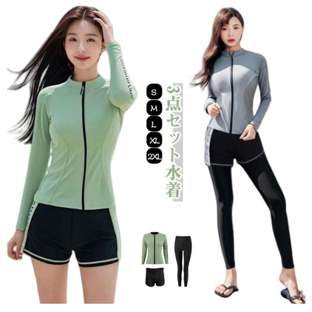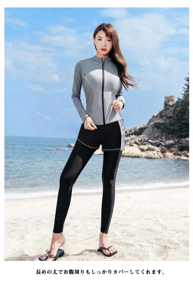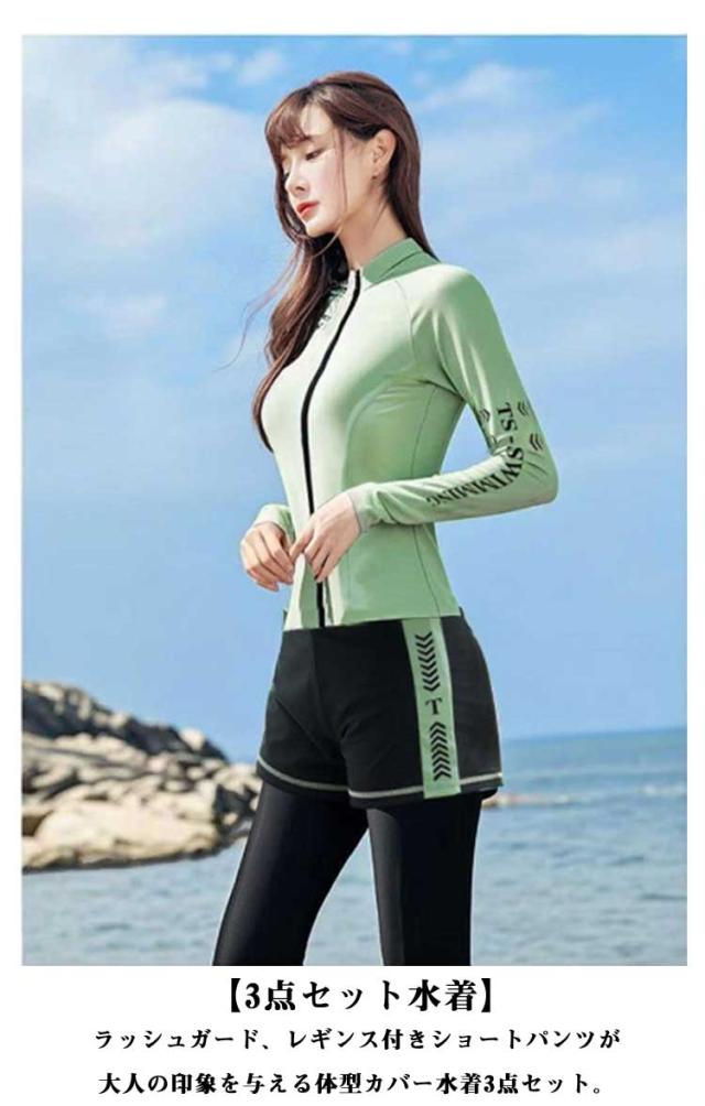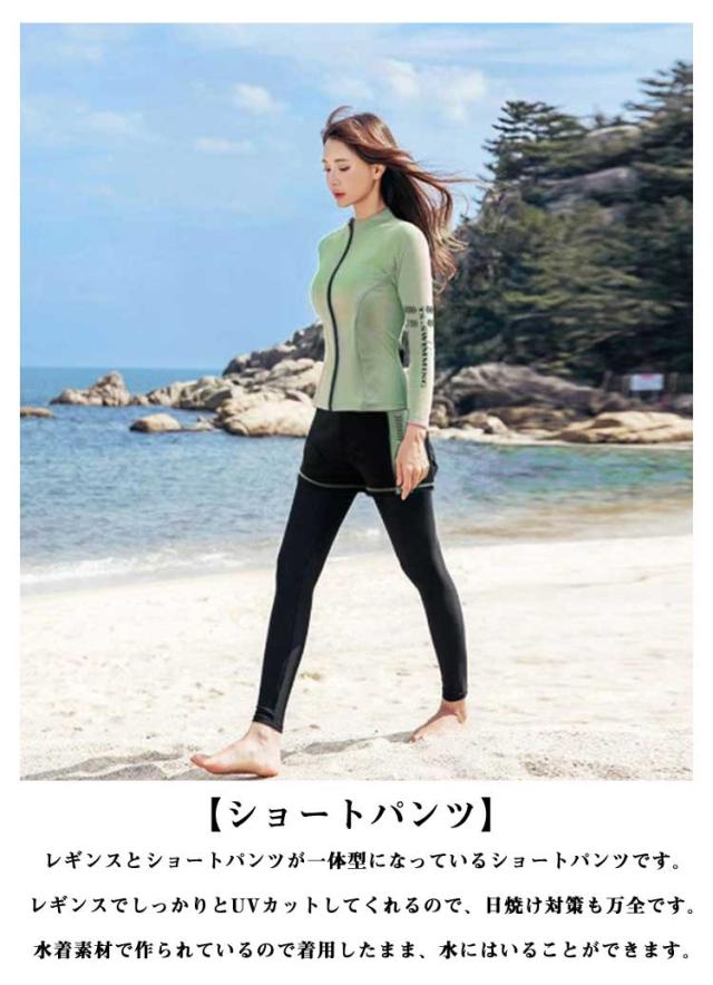 水着 レディース 体型カバー ラッシュガード レギンス付きショートパンツ 一体型 体型カバー おしゃれ 長袖 3点セット セパレート フィットネス プール セパレート レギンス ショートパンツ フードなし かわいい 脚 二の腕 送料無料