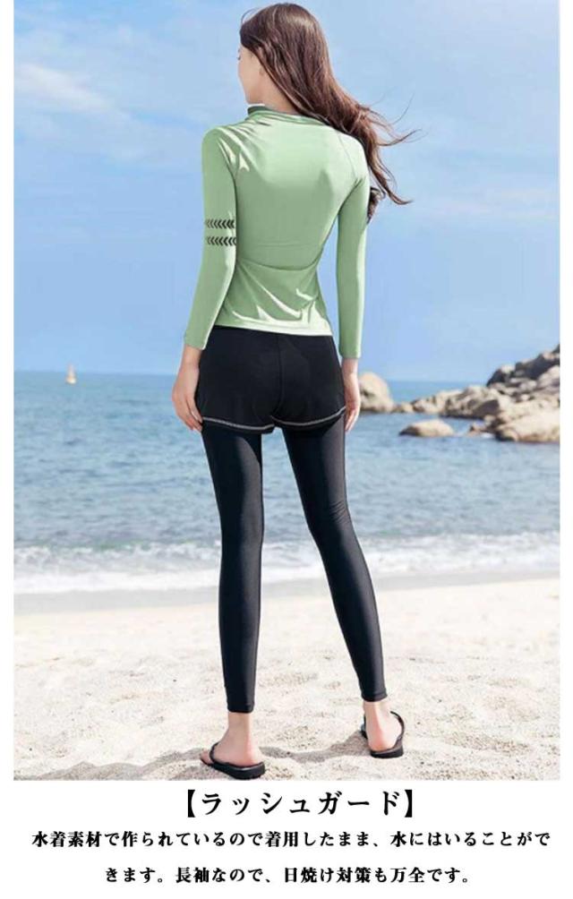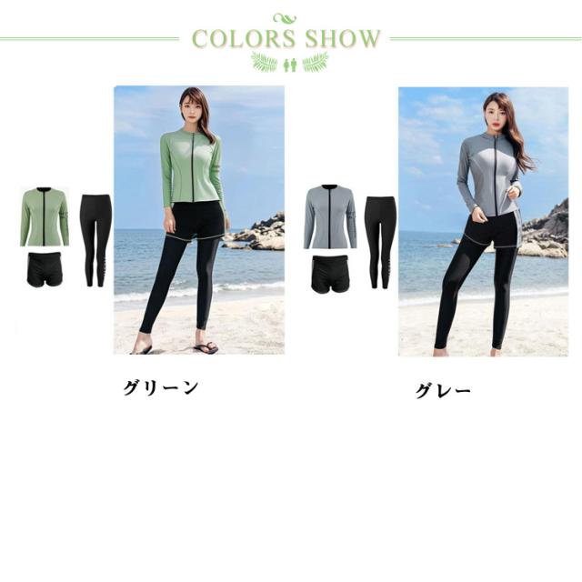 | ○【3点セット水着】ラッシュガード、レギンス付きショートパンツが大人の印象を与える体型カバー水着3点セット。 【ラッシュガード】水着素材で作られているので着用したまま、水にはいることができます。 長袖なので、日焼け対策も万全です。 ○【ショートパンツ】レギンスとショートパンツが一体型になっているショートパンツです。 レギンスでしっかりとUVカットしてくれるので、日焼け対策も万全です。 水着素材で作られているので着用したまま、水にはいることができます。 ○長めの丈でお腹周りもしっかりカバーしてくれます。 | |