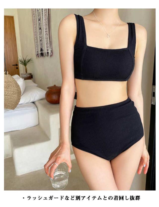 水着 ビキニ レディース 体型カバー ビキニセット 水着2点セット バンドゥビキニ 女性 タンキニ 盛れる パッド付き ママ水着 シンプル ホワイト 白 ブラック 黒 おしゃれ シンプル 脚長効果 おしゃれ かわいい ハイウエスト 送料無料