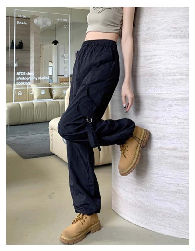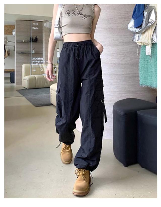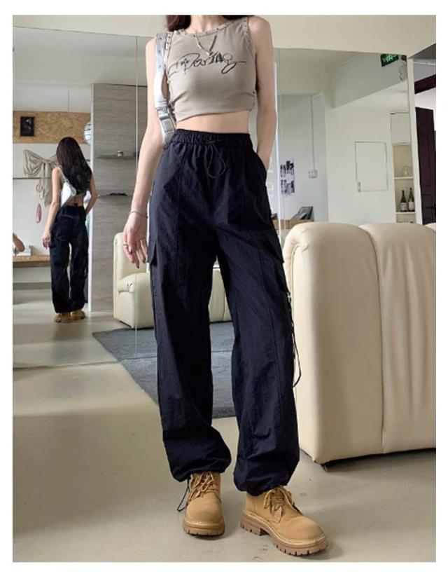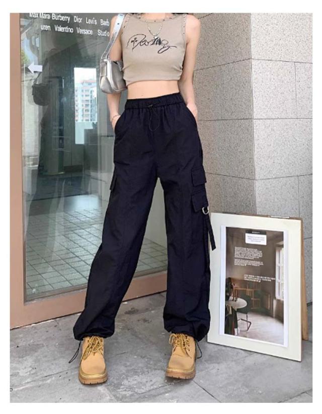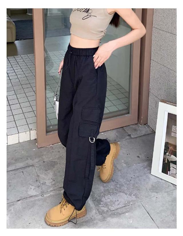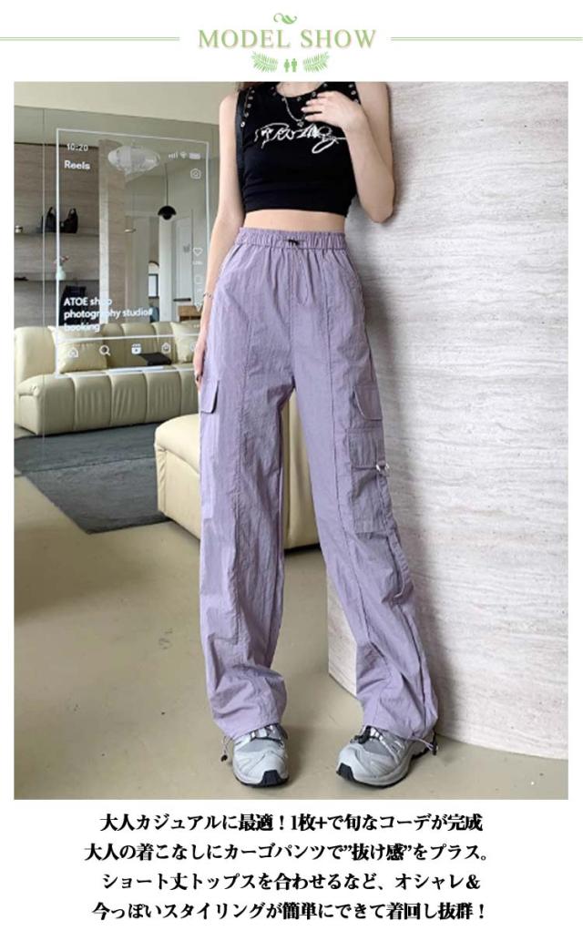 カーゴパンツ レディース ゆったり ワイド ルーズ ズボン ボトムス 黒 メンズライク 無地 楽 動きやすい 女性用 春 秋 薄手 10分丈 サイドポケット ウエストゴム ドローコード 調節 作業着 ストリート ストレート ゆったり カジュアル 送料無料