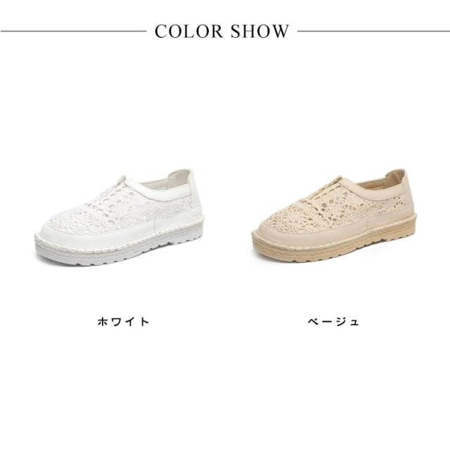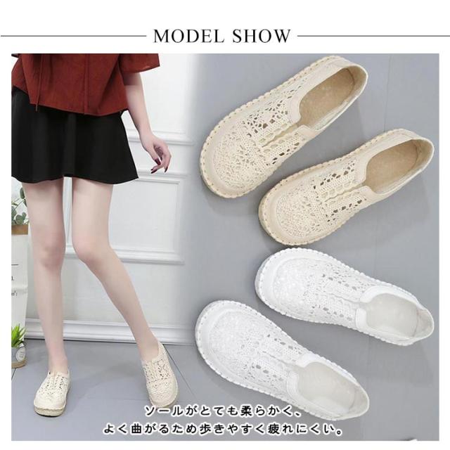 レディース スリッポン カギ編み レーススリッポン 涼しげ フラットシューズ モチーフ やわらか カジュアルシューズ ソフトソール 通気性 歩きやすい 疲れない 女性 靴 軽量 40代 50代 大人可愛い