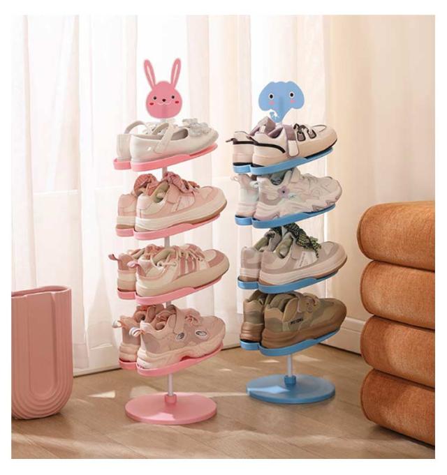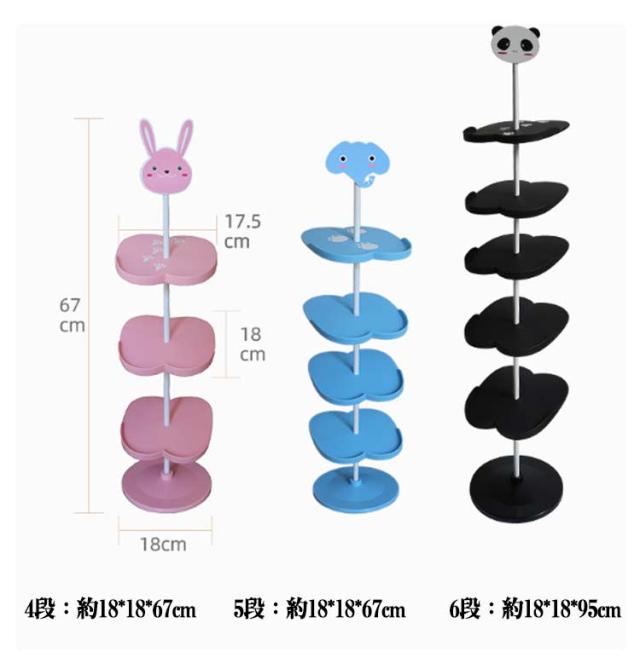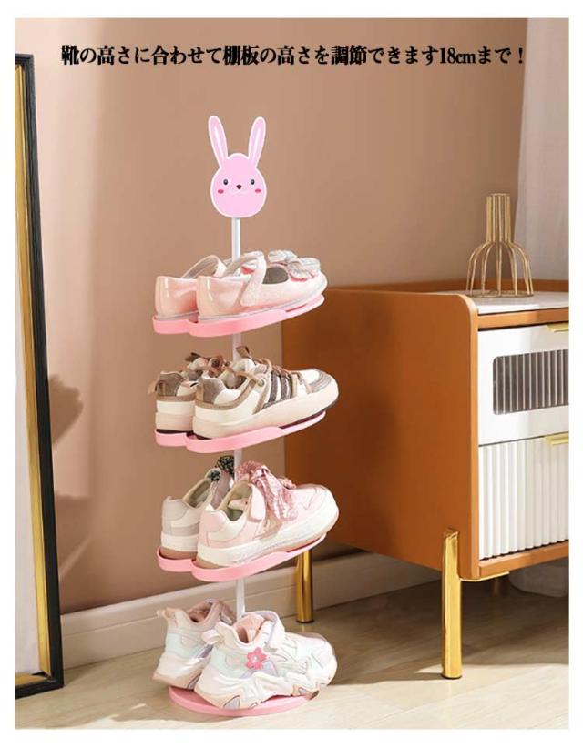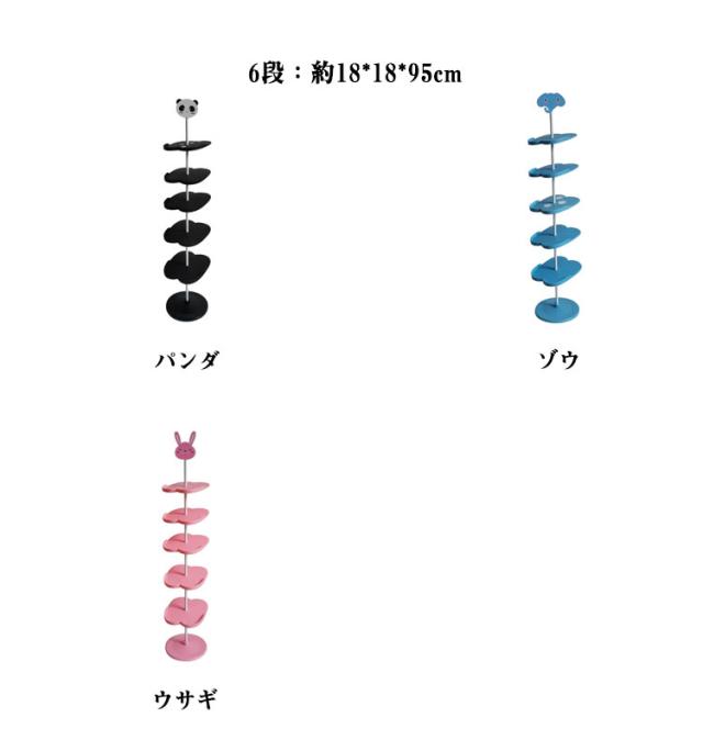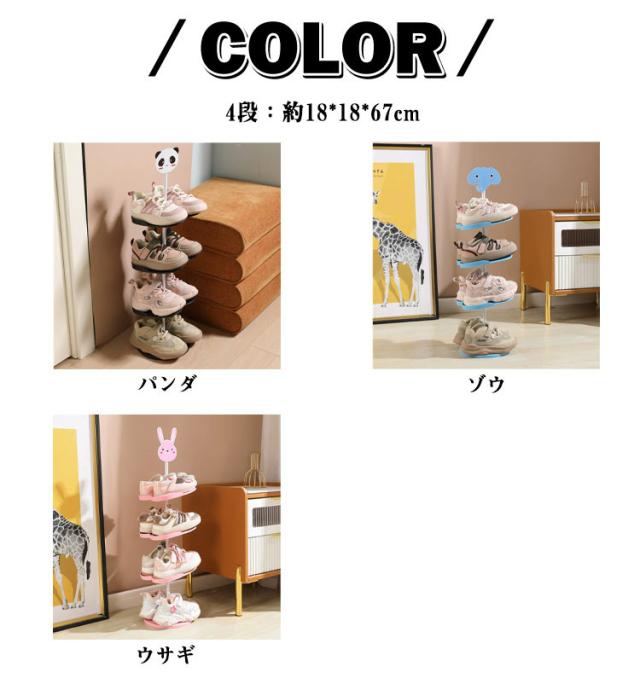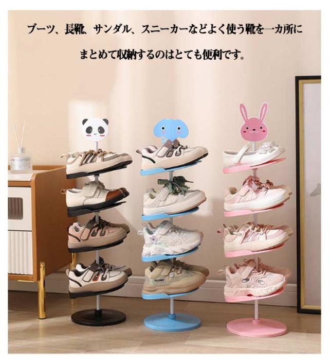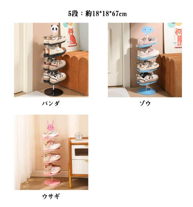 キッズシューズラック 4段 5段 6段 360℃回転 子ども用 シューズラック 子供靴 靴箱 下駄箱 玄関収納 収納ラック 子供用 シューズ収納 靴 キッズ用 省スペース シューズボックス アニマル 動物 パンダ ウサギ 象 靴入れ おしゃれ かわいい スリム