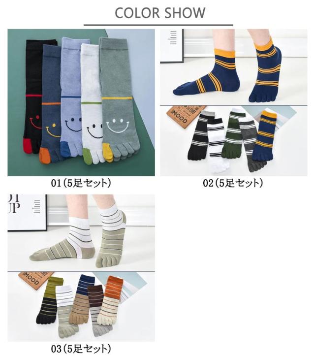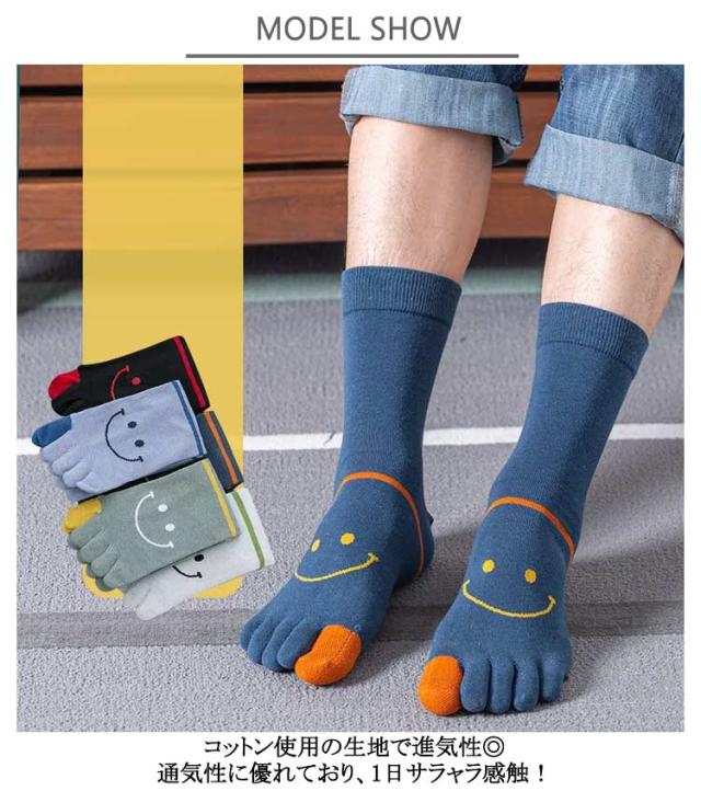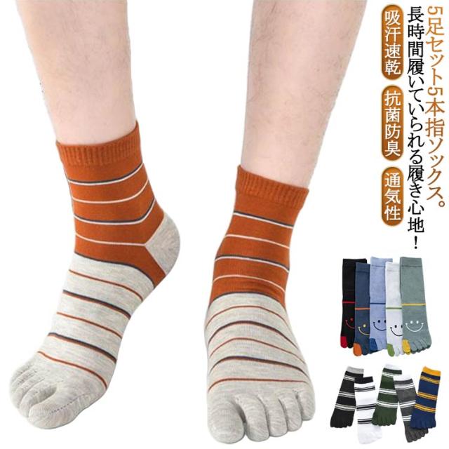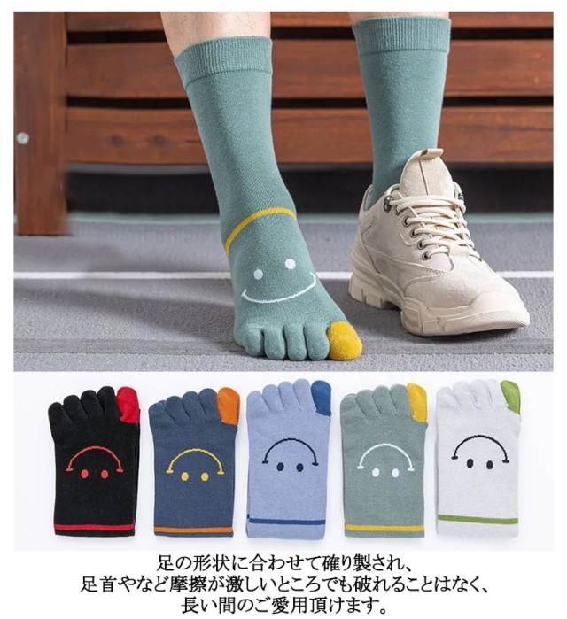 【5足組】5本指ソックス メンズ 五本指靴下 綿混 スマイル柄入り 吸汗速乾 抗菌防臭 蒸れない 靴下 ビジネス スポーツ ソックス 可愛い 笑顔 ボーダー クルーソックス 5足セット カジュアル おしゃれ 通気性 通勤 通学 あったか 秋 冬 オールシーズン 実用的 送料無料