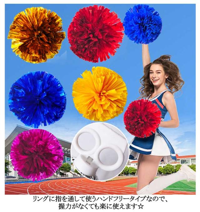 10個入りセット 5人分 ポンポン チア ハンドフリー チアポンポン メッキテープ チアガール 衣装 コスプレ チアリーダー チアリーディング 応援グッズ 運動会ダンス 小道具 余興 キッズ 子供 幼児 大人 チアダンス 赤 青 緑 紫パープル 金 銀 送料無料
