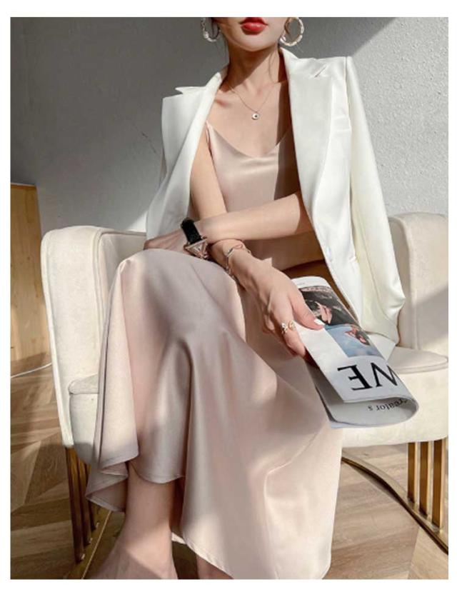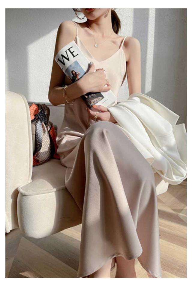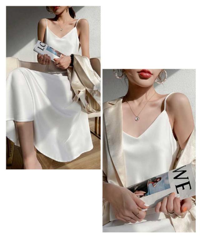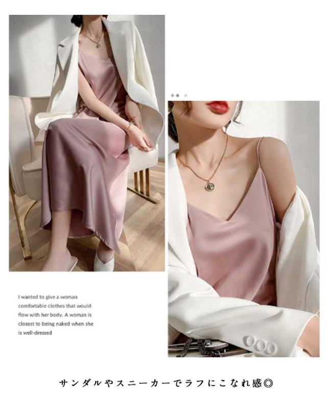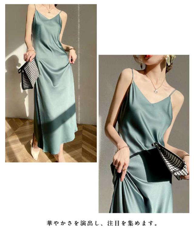 | 高級醋酸サテン素材を使用し、なめらかな肌触りと上質な光沢感が魅力。 エレガントな雰囲気を演出します。 首元をスッキリ見せ、女性らしいシルエットに。 脚線美をさりげなくカバーし、体型を気にせず着られます。 カーディガンやジャケットでフォーマルに。 華やかさを演出し、注目を集めます。 サンダルやスニーカーでラフにこなれ感◎ | |