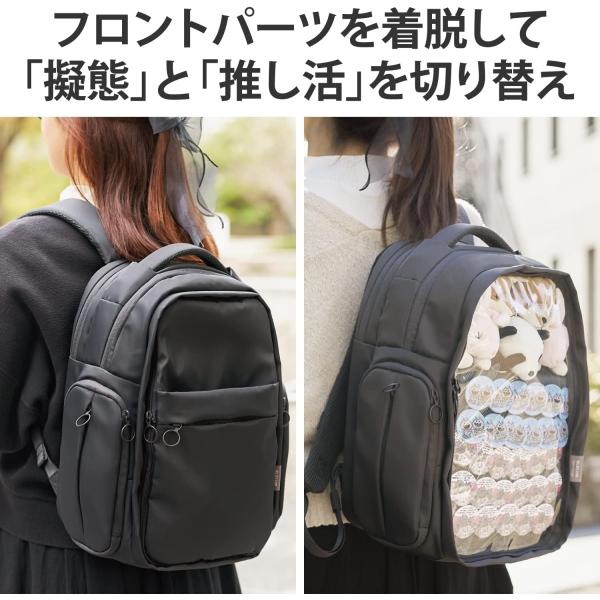 エレコム バックパック 推しごとバッグ 痛バッグ Mサイズ フロントパーツ着脱可能 擬態モード 推し活モード ブラック BM-OGBP02MBK