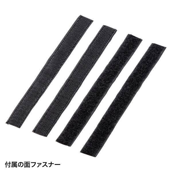●ケーブルやタップを仮固定できる面ファスナー4本付きです。